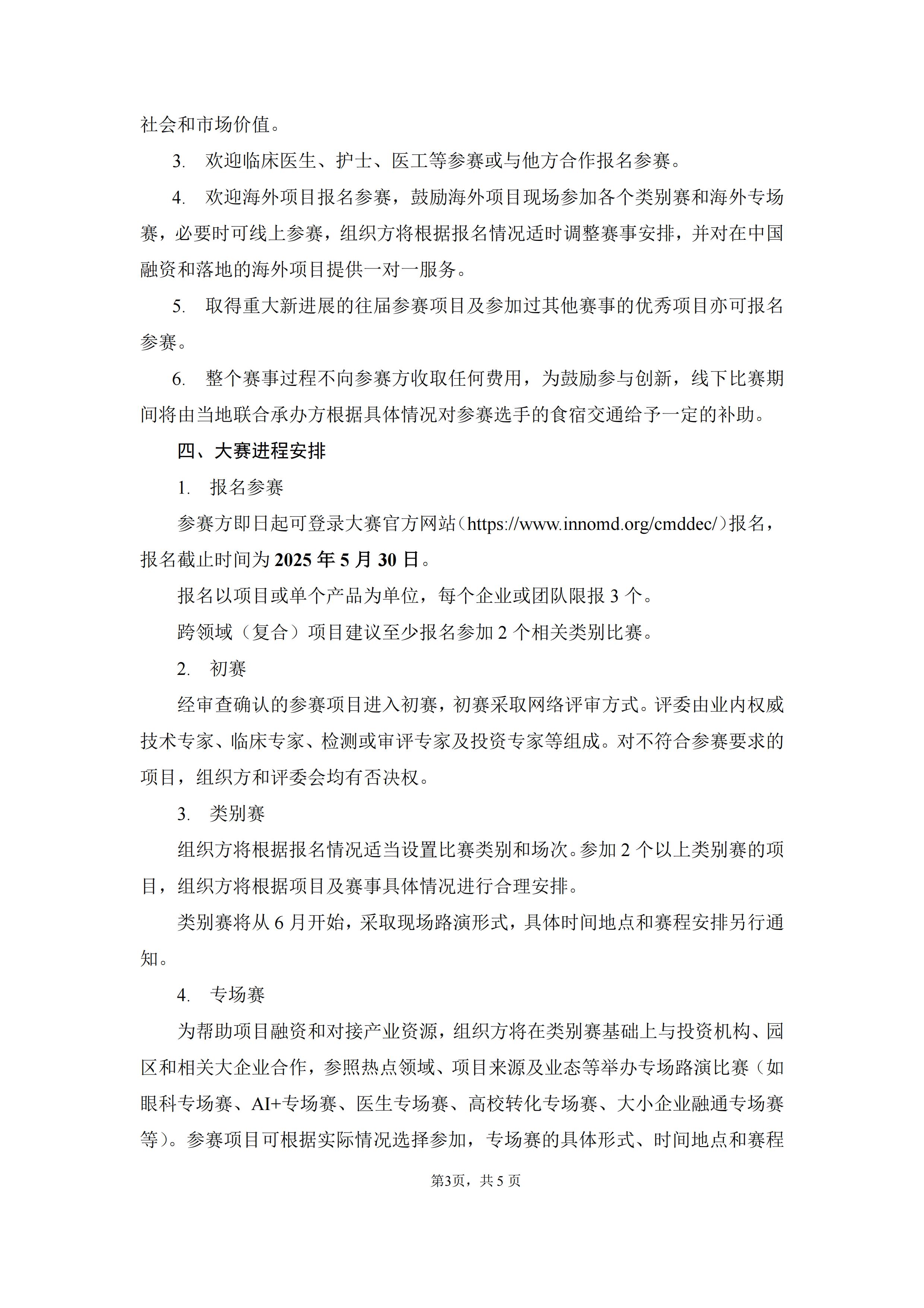 参赛方即日起可登录大赛官方网站(医疗器械创新网网://lvsejiangjiecanju.com/cmddec/)报名,报名截止时间为2025年5月30日。